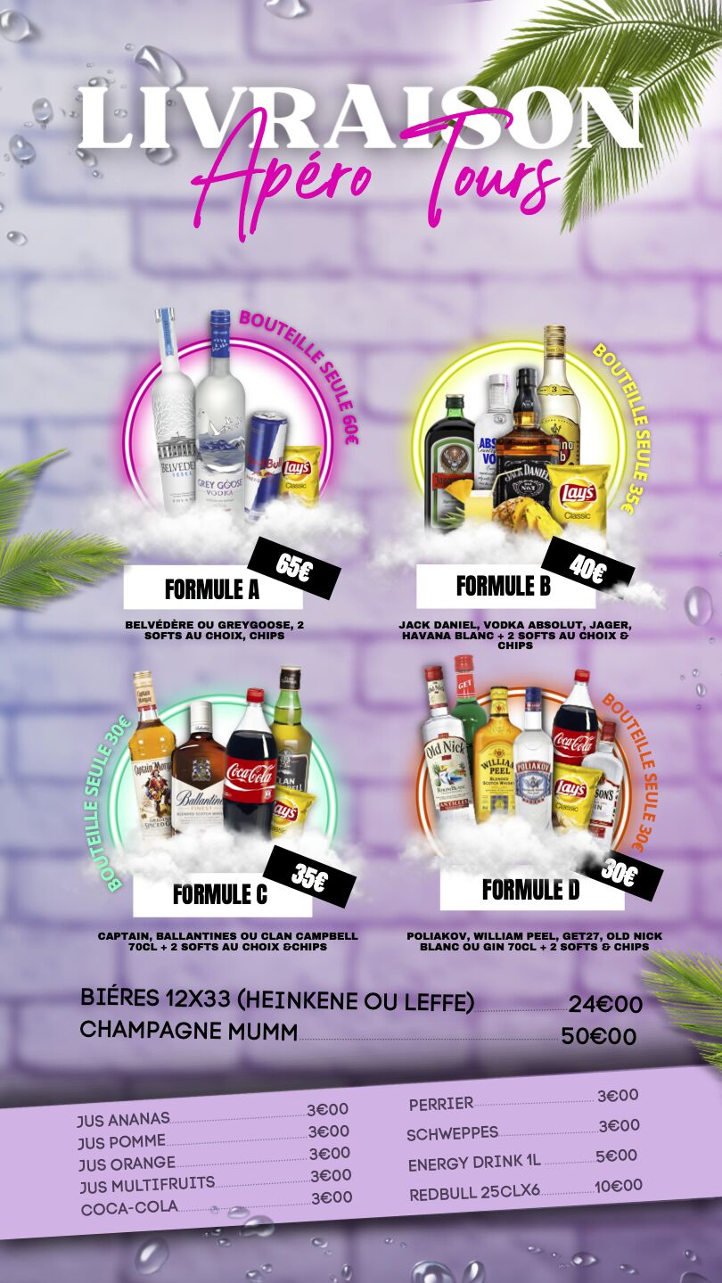 Votre Apéro livré toujours plus vite, toujours moins cher avec Livraison Apéro Tours, toute la night si vous avez soif.